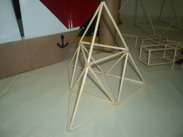 Utilizamos fita dupla face para unir os lados do sólido, além desses materiais utilizamos régua, tesoura, esquadro, transferidor e os moldes podem ser encontrados neste site: http://solanisroliveira.blogspot.com.br/2011/05/planificacoes-de-solidos-geometricos.html.